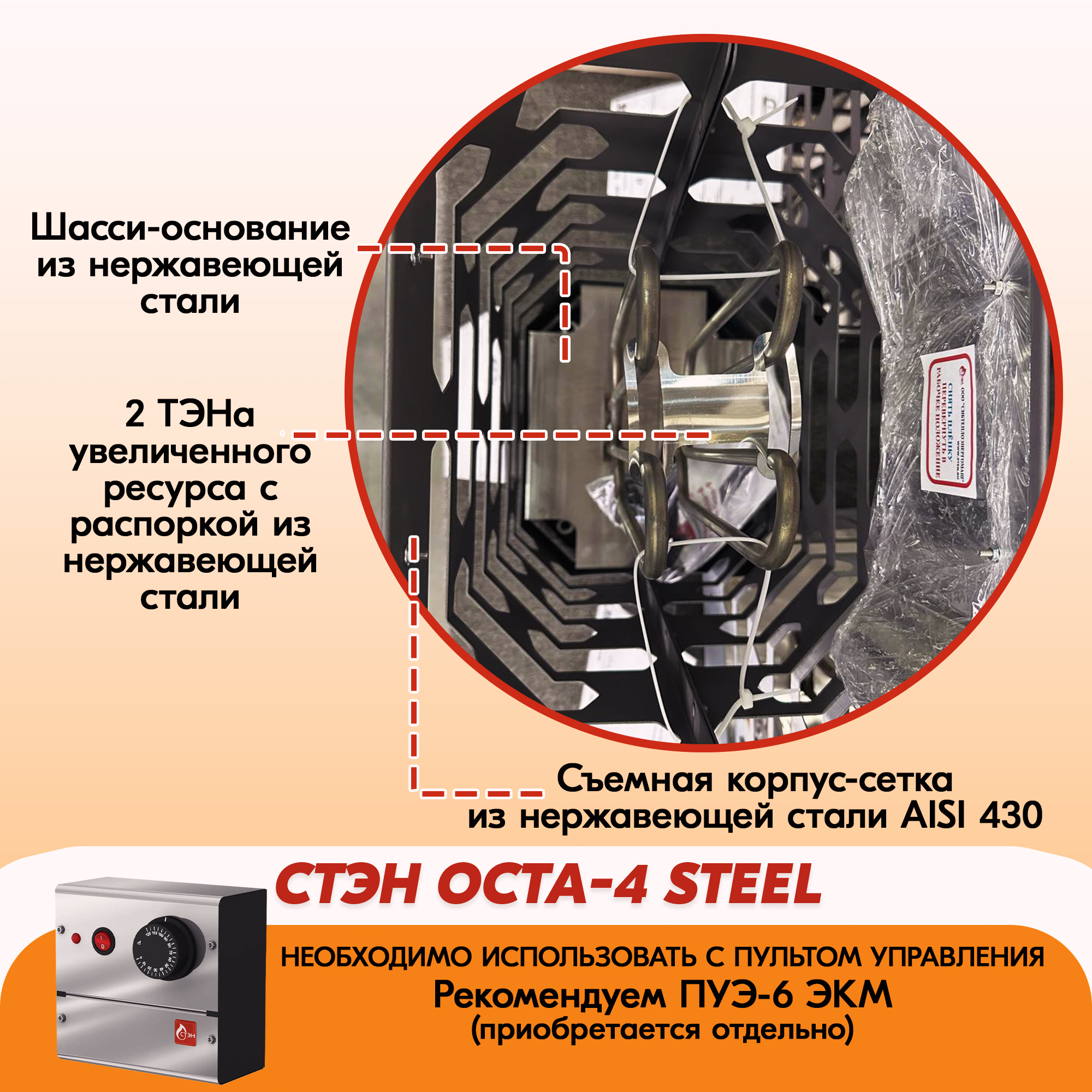 Электрическая каменка СТЭН ЭКМ 4 Octa steel в Москве | Доставка по России