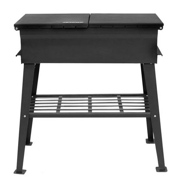 ●    Характерной отличительной особенностью данного мангала является то, что он имеет две крышки, выполняющие функцию закрытия мангальной части, а также подставок под решетку, шампуры либо посуду, необходимую при приготовлении.