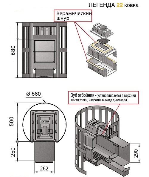 Преимущество печи «Легенда» в том, что топка состоит из двух элементов, толщиной не менее 12 мм. На стыке между ними используется керамический шнур с рабочей температурой 1200 градусов. То есть топка печи абсолютно герметична! Для фиксации деталей между собой применяется болтовое соединение, что даёт 100% гарантию безопасности при эксплуатации. Печи отлиты из специального сплава чугуна, которые выдерживают максимальные температурные перепады, т.е. даже при попадании большого количества воды чугунная печь сохраняет свою исключительную целостность и не лопается в отличие от изделий других производителей. Банная чугунная печь Легенда ковка 22 (270) укомплектована чугунной герметичной дверцей Везувий 270 с жаропрочным стеклом «SHOT ROBAX», и кованным конвекционно-вентилируемый кожухом. В конструкции данной печи предусмотрен топочный тоннель длиной 200 мм, при помощи которого печь топится из соседнего помещения, смежного с парильным</p>