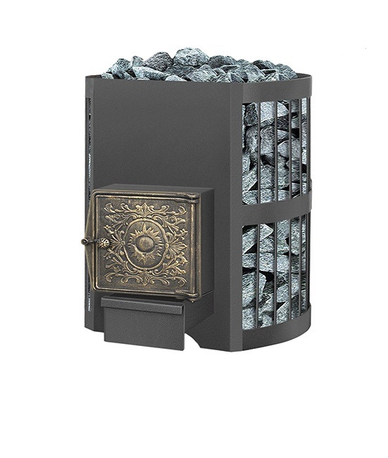 При проектировании печи для бани «Скиф» конструкторы нашего завода смогли добиться уникальной конструкции, при которой сочетаются все плюсы металлической печи, и печи конструированной из кирпича. Данная печь имеет высокое КПД, а так же изготовлена из специальной конструкционной стали с элементами топки достигающими 12 мм, которая при высоких температурах не подвергается деформации. Металлическая печь как известно достаточно быстро прогревает помещение, проста в обслуживании и установке. Конвекционно-вентилируемый кожух (сетка) вмещает в себя большое количество камней, которые в свою очередь долго удерживают тепло и не выделяют инфракрасное излучение. Мощный колосник из массивного чугуна обеспечивает равномерное горение дров, а выдвижной зольный ящик позволяет удалить золу, не прерывая сгорания. С помощью него Вы можете легко и эффективно регулировать интенсивность горения. Эргономичный дизайн печи позволяет устанавливать её в любом удобном для Вас месте. Банная печь Скиф Ч укомплектована топочной глухой чугунной дверцей и имеет конвекционно-вентилируемый кожух (сетка), который изготовлен из калиброванного прута диаметром 6 мм. Дровяная печь Везувий Скиф 12 Ч рассчитана на объем парильного помещения 6-14 м3. В конструкции данной печи не предусмотрен топочный тоннель, что позволяет топить её прямо из парильного помещения.