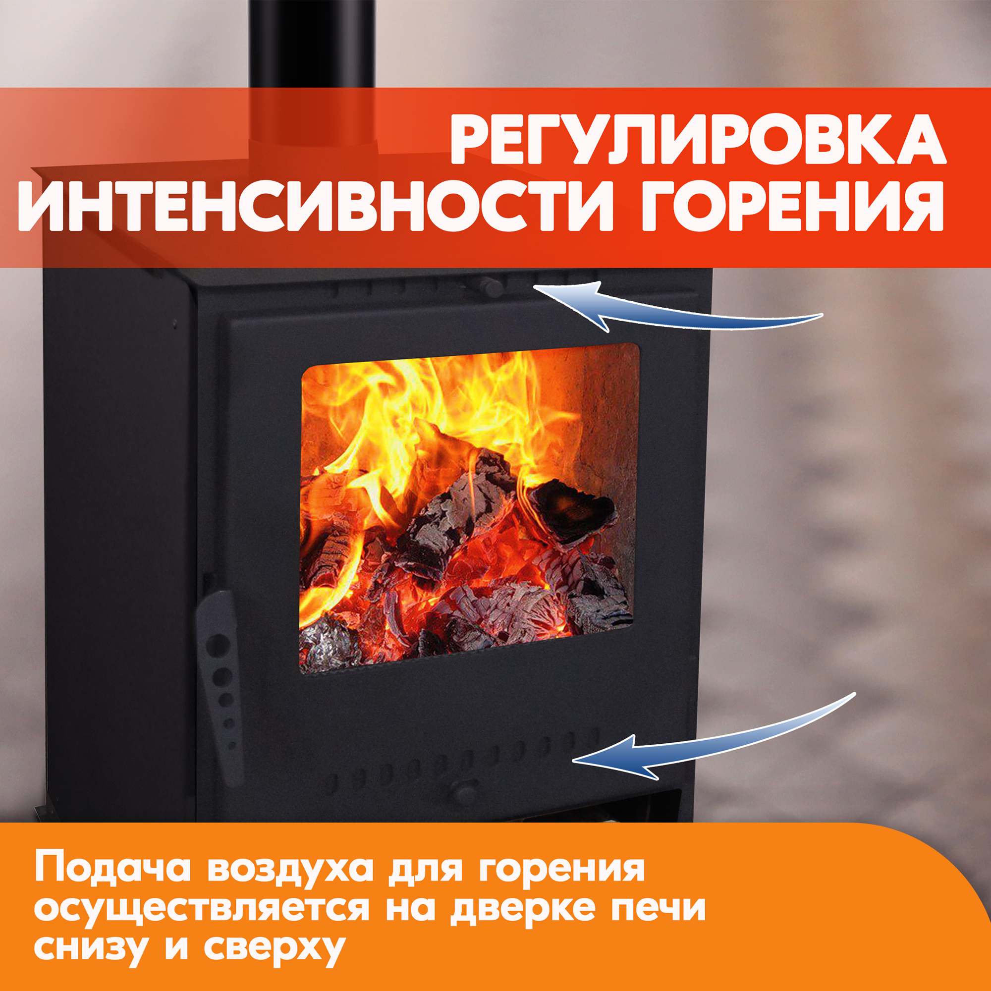Благодаря стальному корпусу, печка быстро прогревает воздух в помещении.