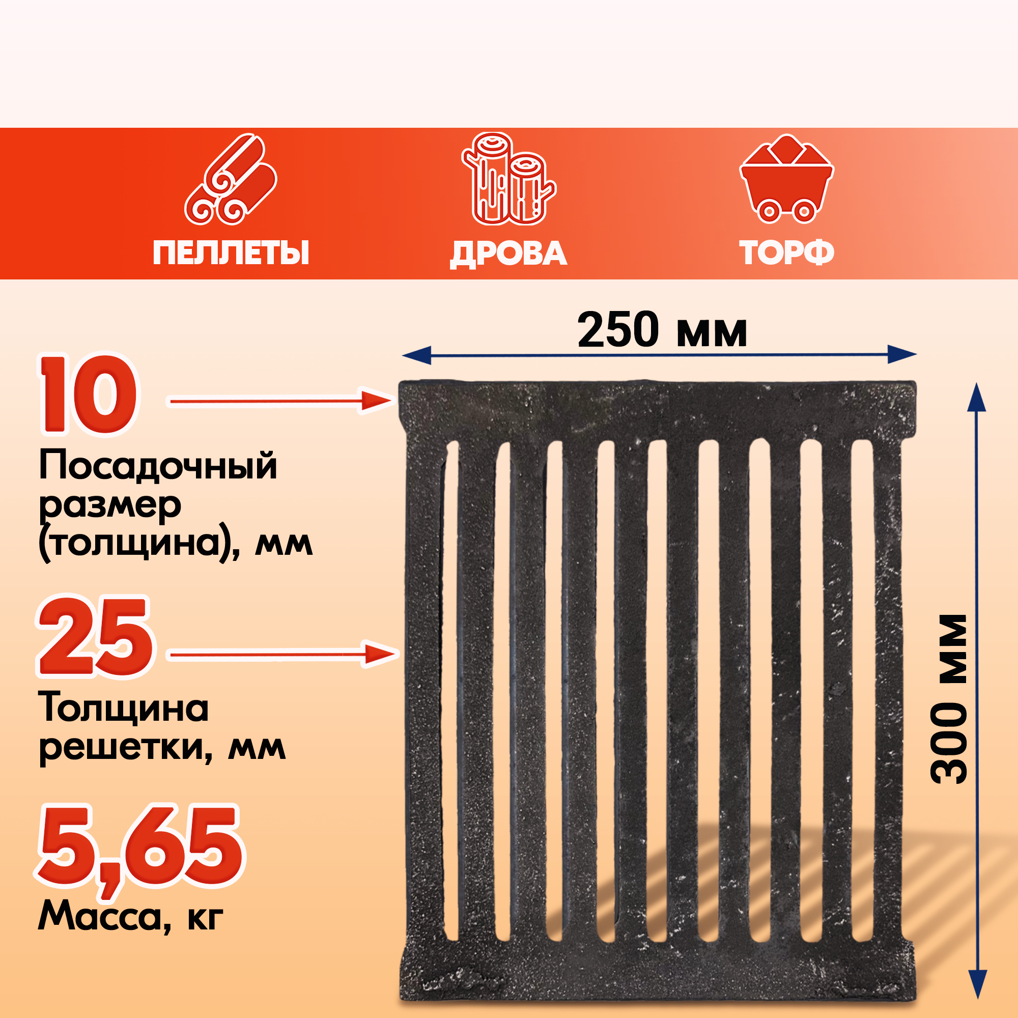 Модели колосниковых решеток для дров от Бисерского литейного завода также пригодны к топке торфом или брикетами из опилок.