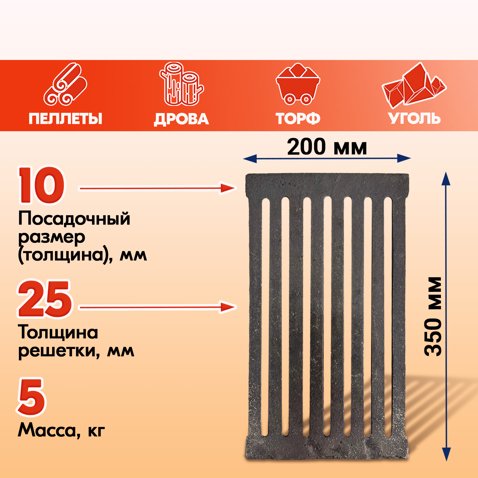 Решетка колосниковая РУ-3 (350х200) чугунная для печи и котла, правильные колосники для печки и котлов