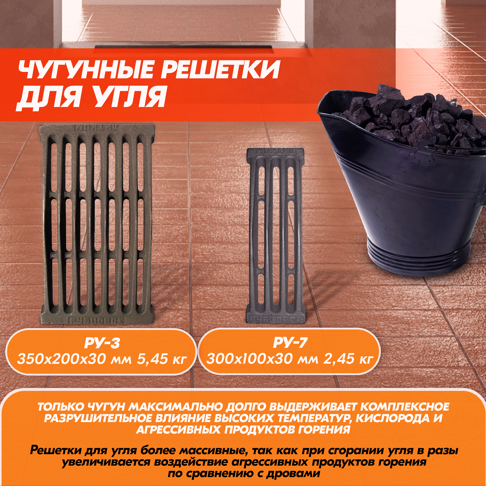 РУ – подходит для печек, топящихся углем.