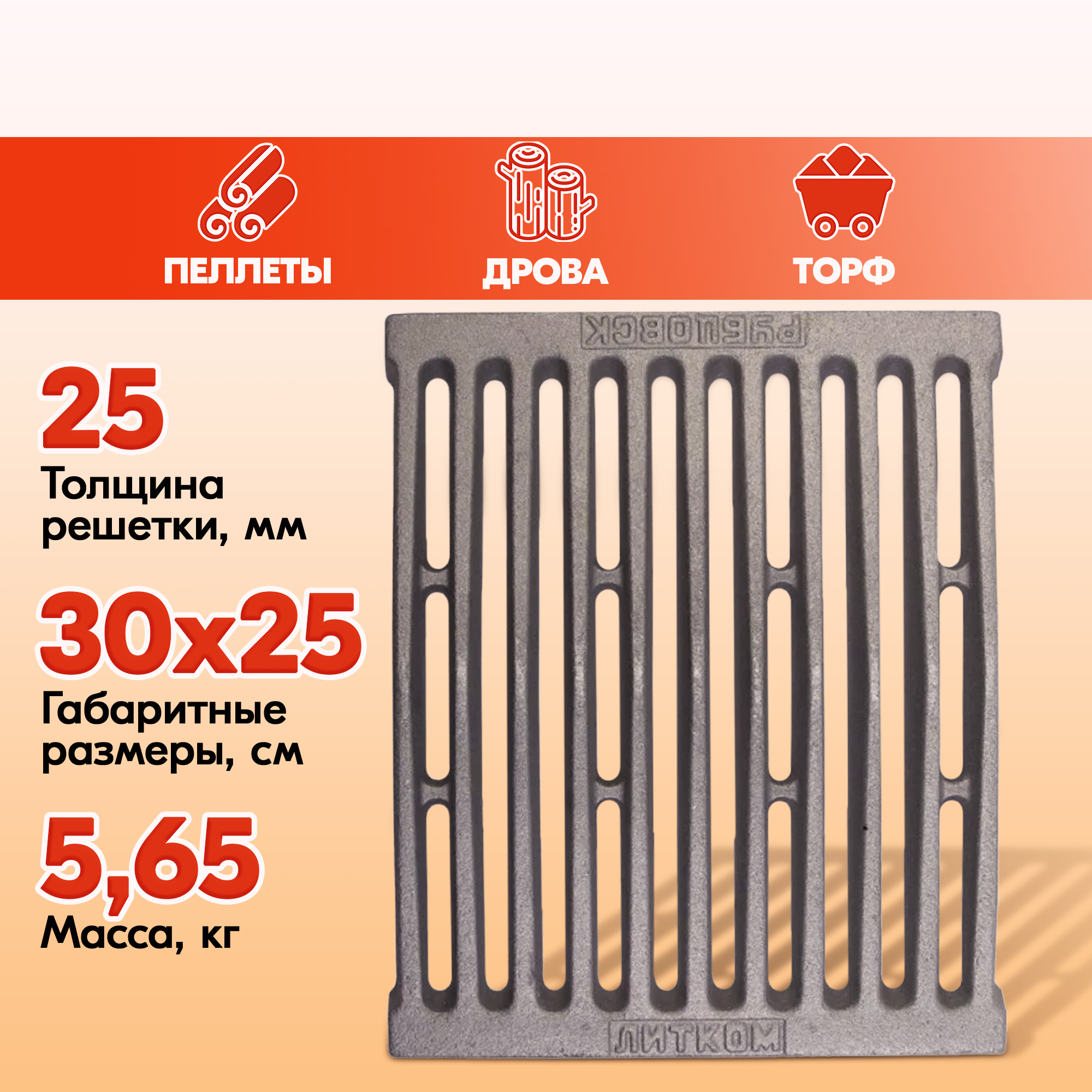 Модели колосниковых решеток для дров от Рубцовского завода ЛИТКОМ также пригодны к топке торфом или пеллетами.