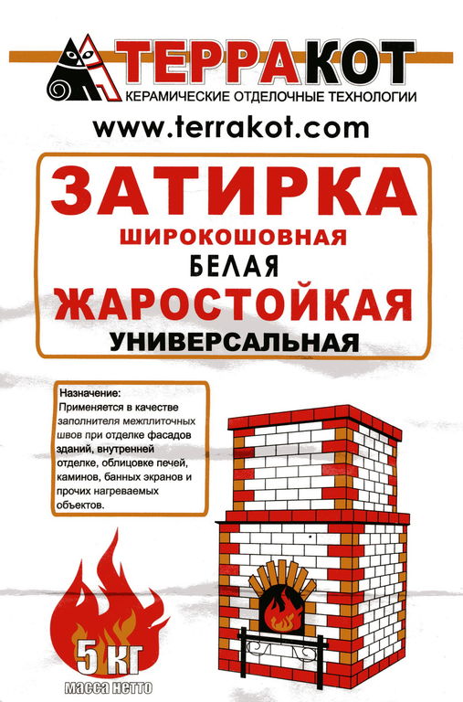 Жаростойкая универсальная затирка "Терракот" применяется для заполнения межплиточных швов на всех видах поверхностей, в том числе на нагреваемых поверхностях (печи, камины, барбекю, мангалы).