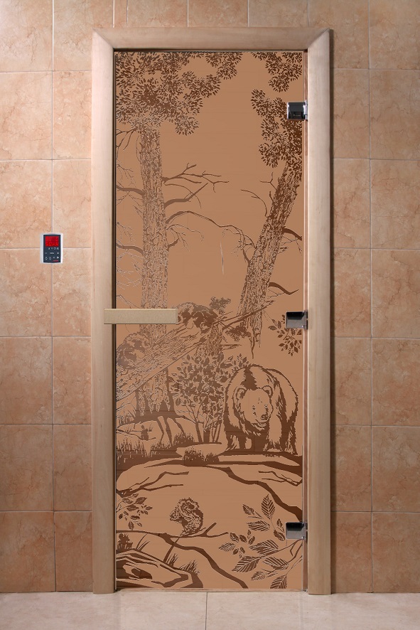 Дверь для сауны "Мишки в лесу" (матовая) 190х70 в Москве | Доставка по России
