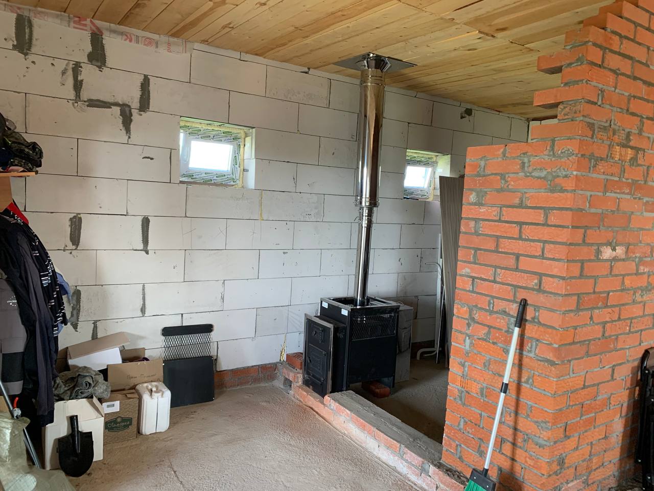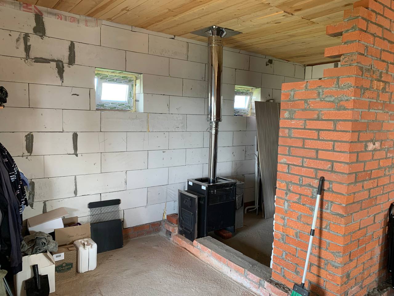Монтаж банной печи Радуга ПБ-21Б с установкой дымохода