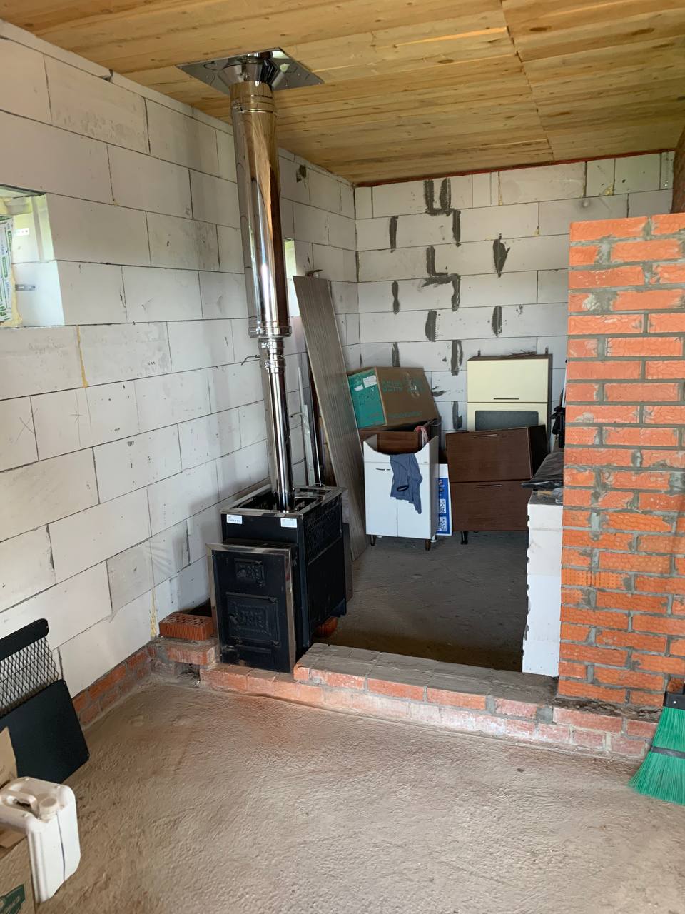 Монтаж банной печи  Радуга ПБ-21Б с установкой дымохода Тис