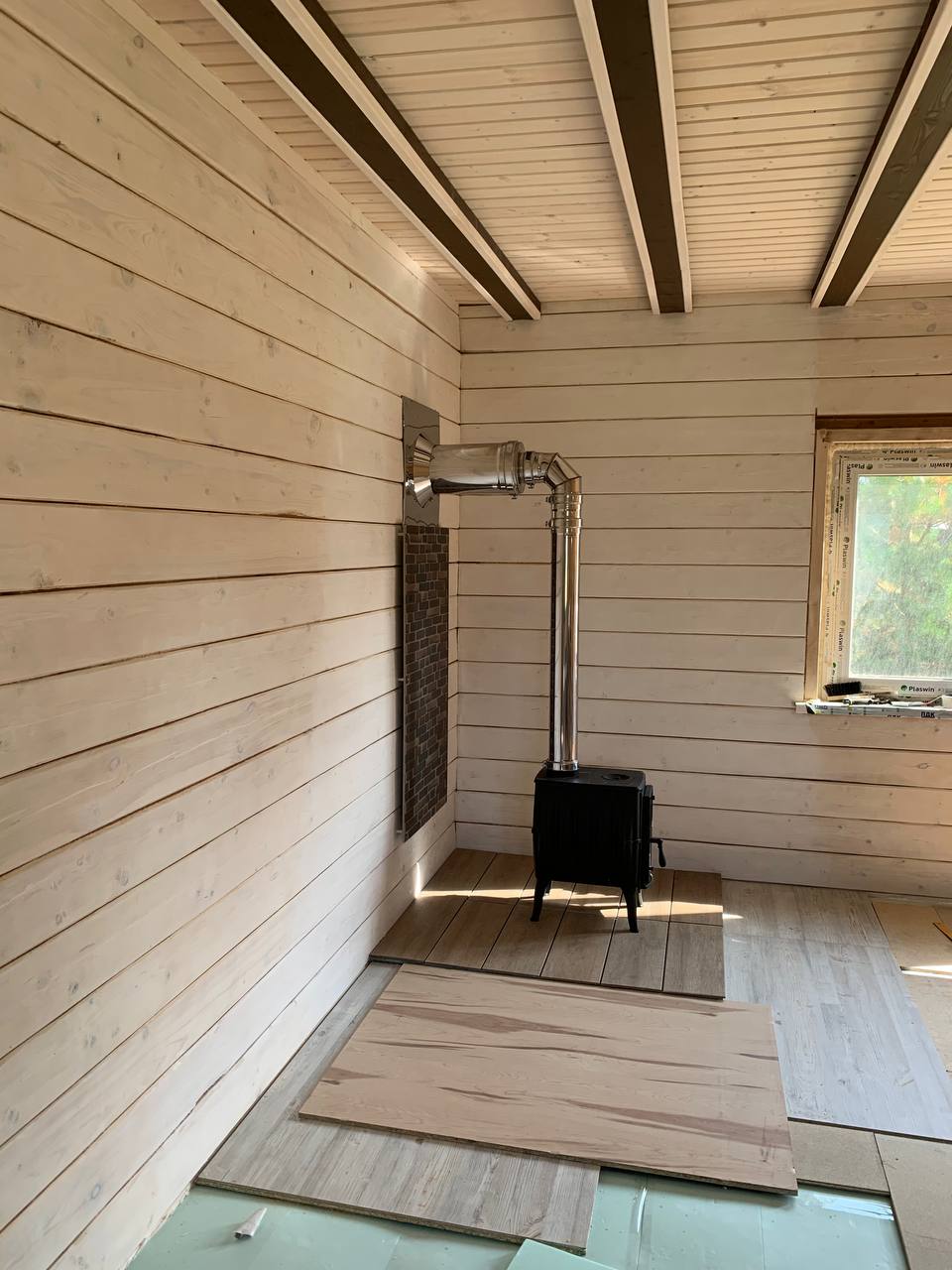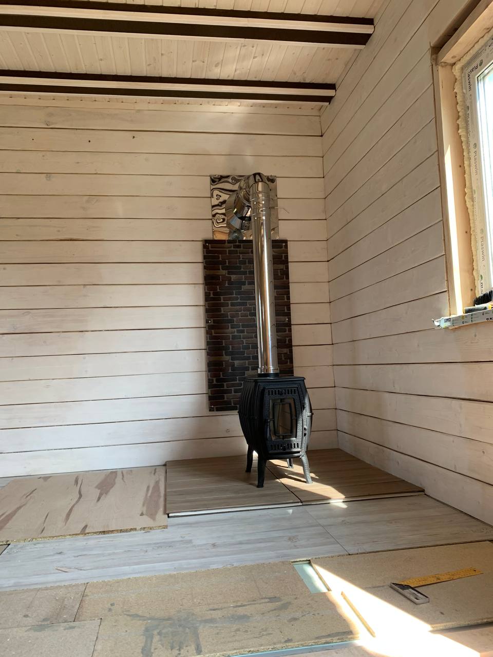 Установка печи-камина Бахтинка и монтаж дымохода.
